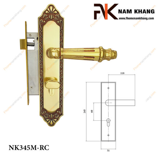 Khóa cửa thông phòng NK345M-RC có thiết kế tinh tế trên nền chất liệu đồng thau cổ điển. Các họa tiết trên toàn thân và phần tay gạt của khóa cửa được tập trung giữ nguyên nét cổ điển với sự phân bố hợp lí mang giá trị thẩm mĩ cao. Sản phẩm có kích thước vừa phải, phù hợp sử dụng làm khóa cửa thông phòng, khóa cửa nhà vệ sinh, khóa cửa ban công. Thiết kế của khóa cửa NK345M-RC còn được sử dụng để trang trí cho các không gian cổ điển và không gian vương giả càng trở nên cao cấp và sang trọng hơn.