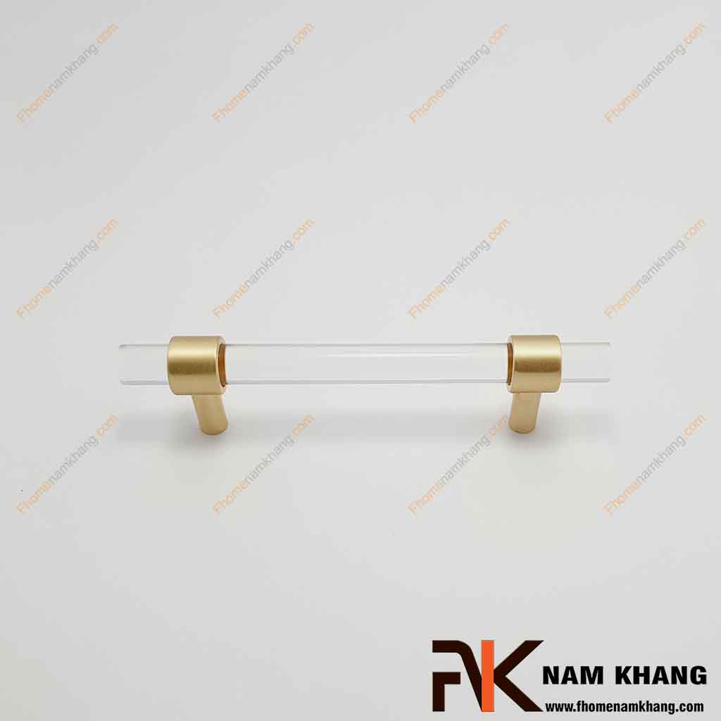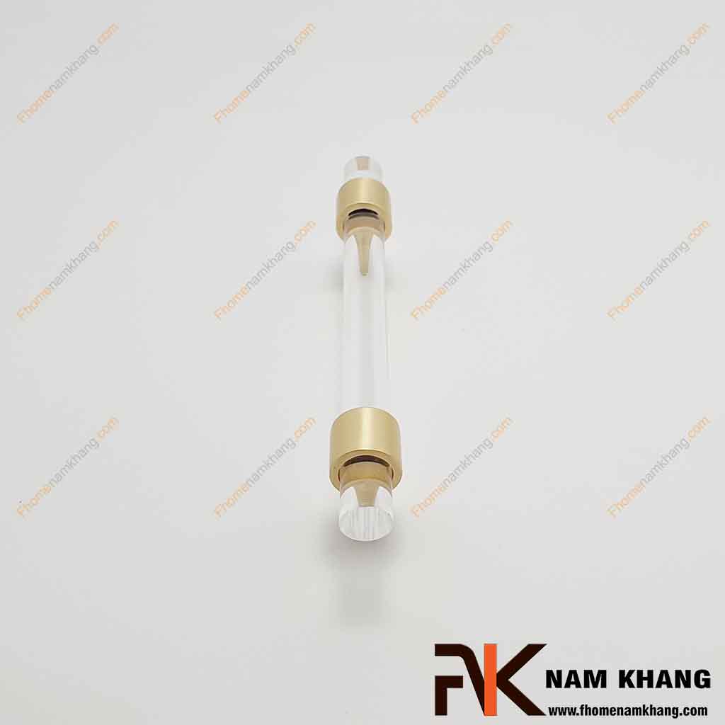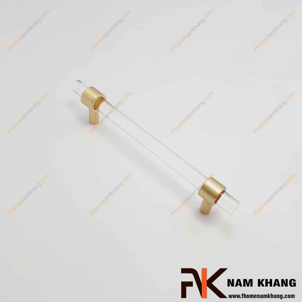 Tay cầm cửa tủ dạng thanh bằng acrylic NK465T-VM là tay nắm phối hợp sử dụng thanh tròn giữa là từ acrylic trong suốt và 2 chân đế là hợp kim cao cấp, mang phong cách độc đáo giúp nổi bật sản phẩm.
