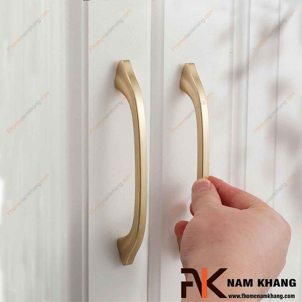 Từng đường nét góc cạnh của dòng tay nắm NK130S được xử lý theo công nghệ hiện đại, rất mượt mà, từng vân nổi lên nhưng không quá thô bạo mà uốn lượn rất nhẹ nhàng tạo cảm giác thoải mái và chắc chắn khi cầm nắm và thao tác đóng mở cánh cửa tủ.