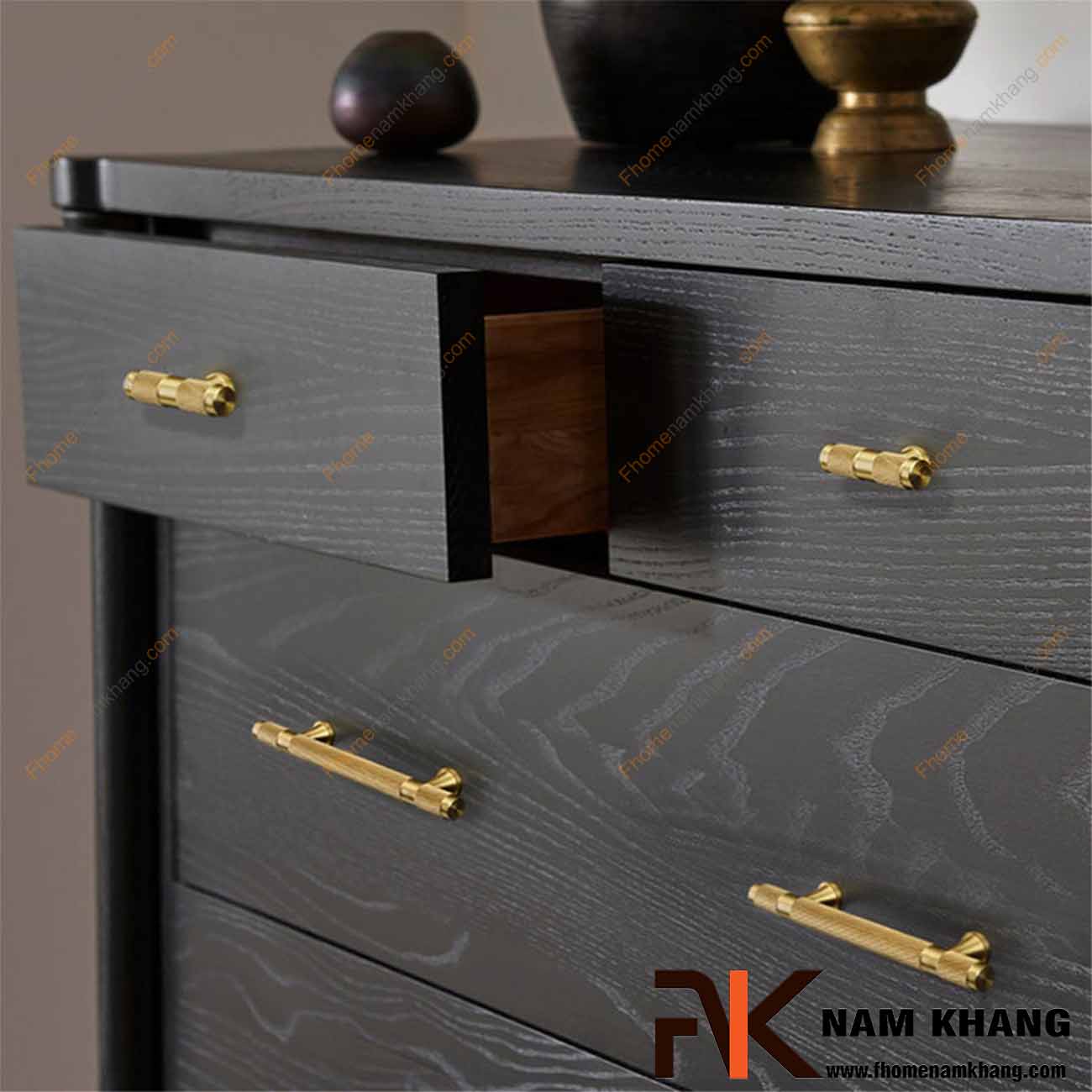 Tay nắm tủ thanh tròn màu vàng NK207S có thiết kế khá đặc biệt và thu hút khi kết hợp chân đến tròn mạ vàng bóng phối hợp với phần thân là một ống tròn từ chất liệu hợp kim bền chắc.