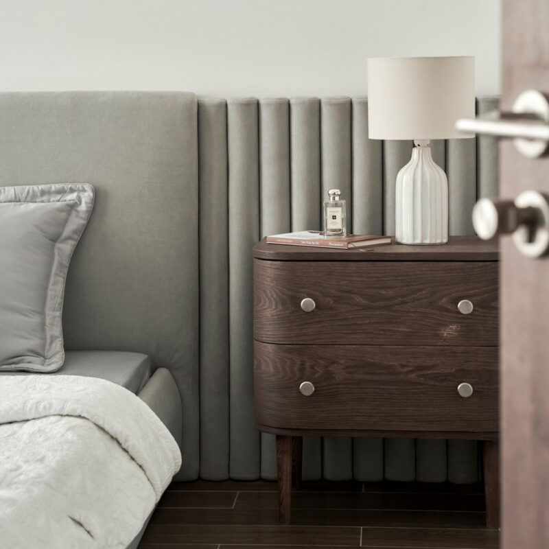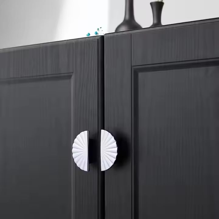 Tay nắm tủ màu trắng bạc đặc biệt phù hợp với những tủ gỗ tối màu, tạo nên sự tương phản nổi bật và thu hút ánh nhìn.