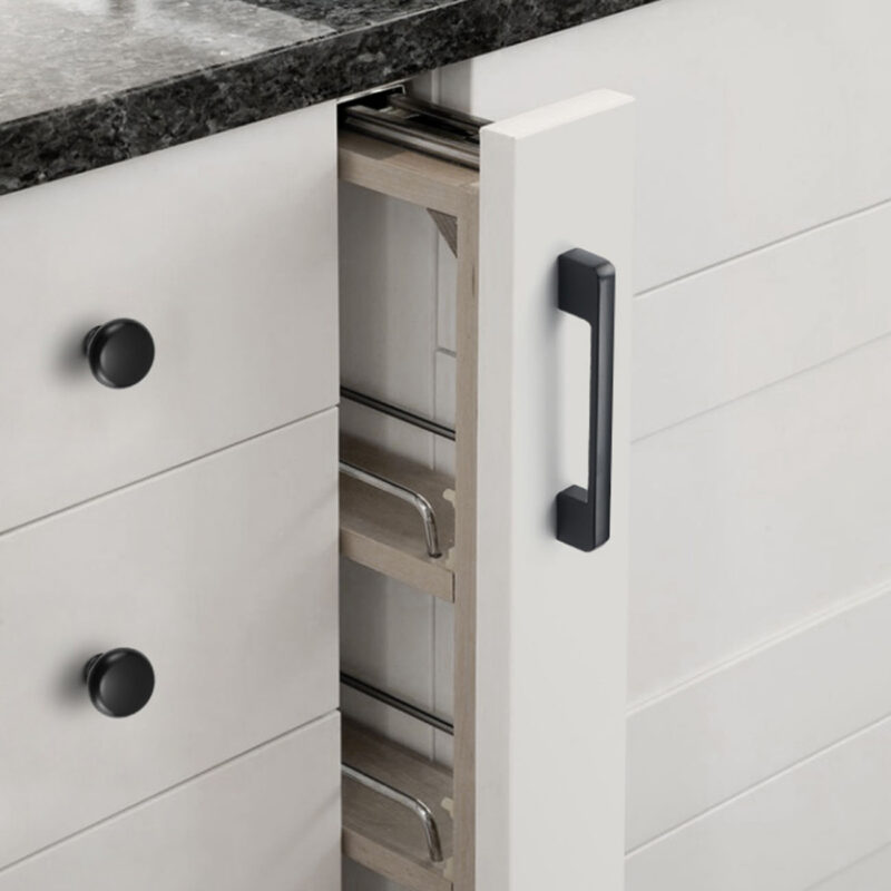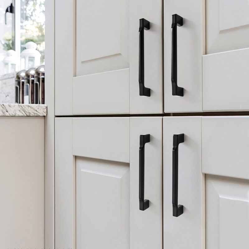 Tay nắm tủ màu đen mờ đặc biệt phù hợp với những tủ gỗ sáng màu, tạo nên sự tương phản ấn tượng và thu hút.