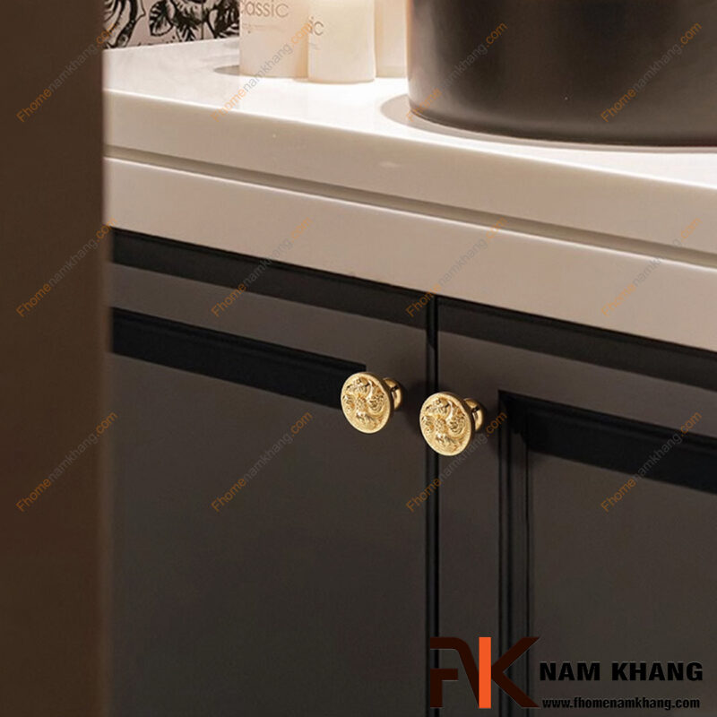 Phong cách cổ điển/sang trọng: Được thể hiện qua các núm đồng với bề mặt được đánh bóng, tạo chiều sâu và cảm giác vượt thời gian.
